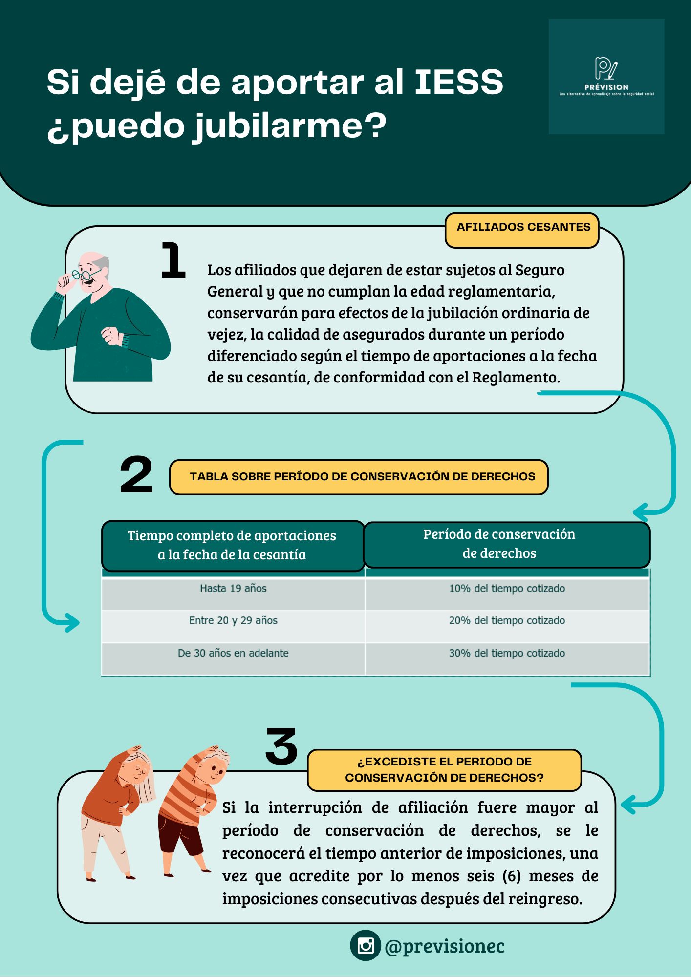 En esta infografía podrás conocer acerca del período de conservación de derechos a la fecha de la cesantía y ¿qué hacer para solicitar la jubilación si se ha excedido dicho período?: 👇
