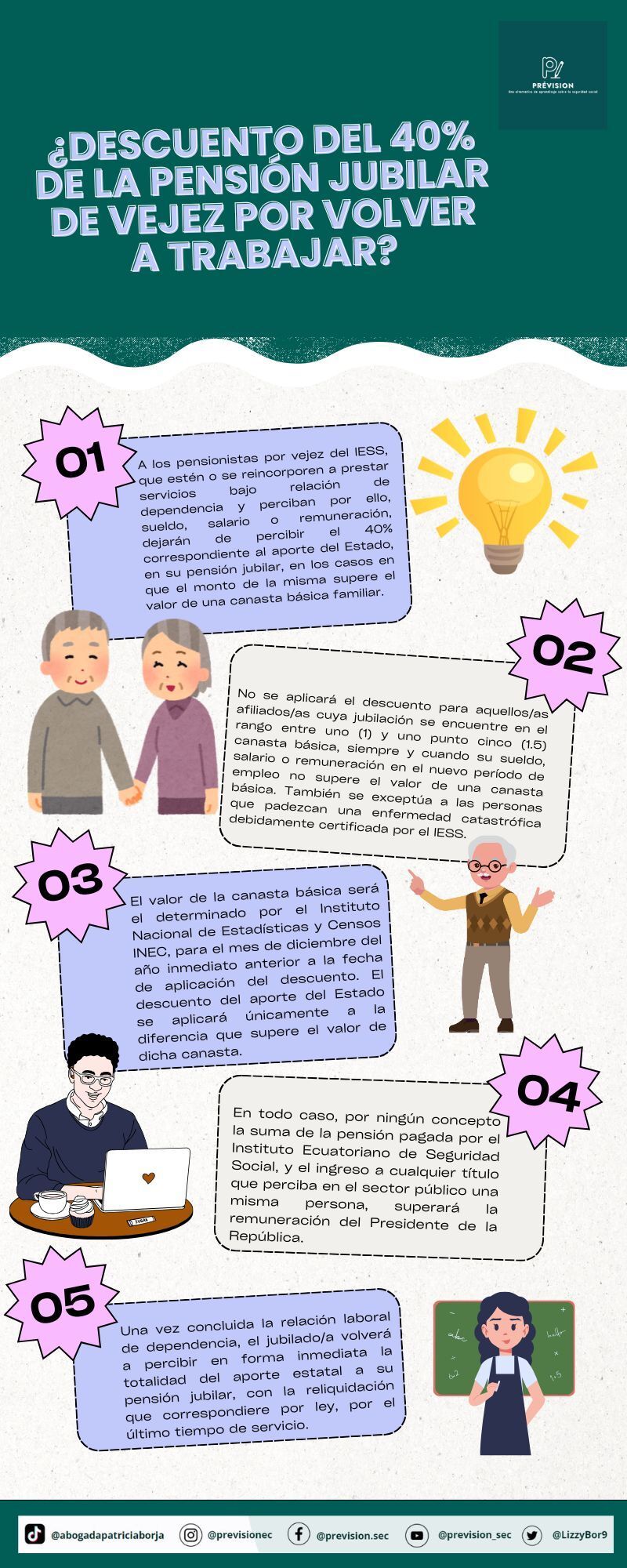 En segundo lugar, en este Boletín podrás revisar la respuesta a la siguiente interrogante: Soy jubilado de vejez del IESS y si vuelvo a trabajar bajo relación de dependencia, ¿pueden descontar mi pensión jubilar? 👇