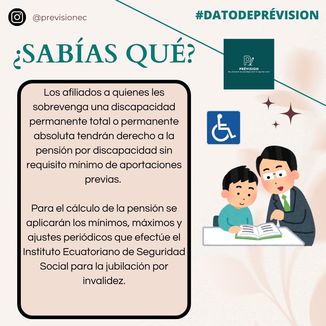 De acuerdo con la respuesta que obtuve a una consulta que formulé al Instituto Ecuatoriano de Seguridad Social, para acceder a esta prestación, el asegurado debe haber sido calificado -por el Ministerio de Salud Pública- como una persona con discapacidad permanente total o con discapacidad permanente absoluta para, al amparo de esta norma, acceder a dicha prestación.
