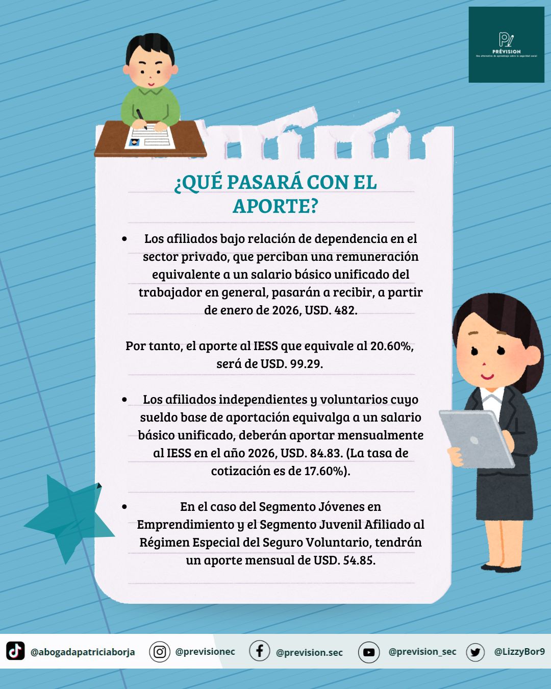 Pero ¿cómo influye el incremento del Salario Básico Unificado del Trabajador en general para el año 2026, en la aportación al IESS? 👇️