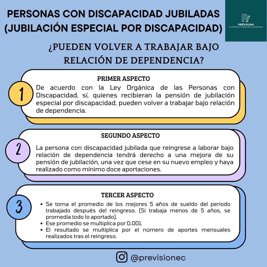 En segundo lugar, en este Boletín Informativo podrás conocer sobre el siguiente tema: Si soy jubilado por discapacidad del IESS (jubilación especial por discapacidad), ¿puedo volver a trabajar bajo relación de dependencia? 👇