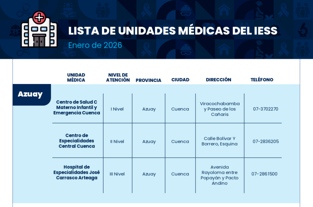 Enlace para acceder a la LISTA DE UNIDADES MÉDICAS DEL IESS (Enero de 2026) 👇