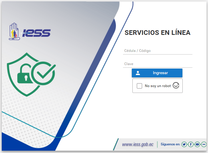 Colocar tu usuario (número de cédula) y contraseña. Además, debes seleccionar que no eres un robot, como consta en esta captura de pantalla tomada de la página web del IESS, con fines exclusivamente informativos: 👇