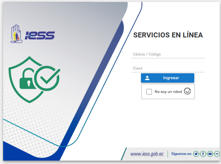 Colocar tu número de cédula y tu contraseña. Además, debes seleccionar que no eres un robot, como consta en esta captura de pantalla realizada de la página web del IESS con fines exclusivamente informativos: 👇